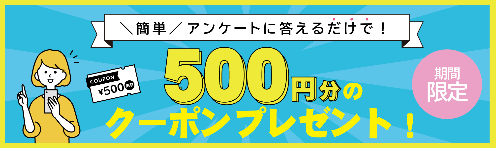 アンケートにお答え頂いた皆様には、日頃の感謝の気持ちを込めて、500円OFFクーポンをプレゼントいたします!